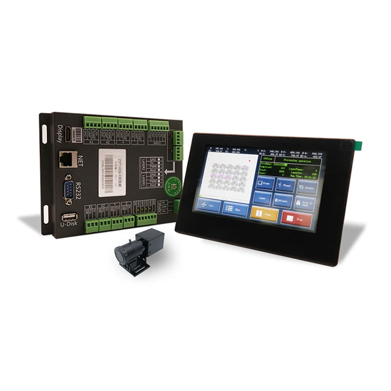 विज़ुअल पोजिशनिंग लेजर कंट्रोल बोर्ड 1.3 मेगापिक्सेल औद्योगिक कैमरे का उपयोग करता है, जो काटने के लिए टेम्पलेट्स को सटीक रूप से पहचान और संरेखित कर सकता है। यह प्रणाली 4-अक्ष नियंत्रण का समर्थन करती है और 7-इंच टचस्क्रीन से सुसज्जित है, जो आसान संचालन और नियंत्रण को सक्षम करती है। यह मल्टी-टेम्पलेट रिकग्निशन फ़ंक्शन का समर्थन करता है, जिससे यह एक साथ कई टेम्पलेट्स को संसाधित करने और उच्च-परिशुद्धता कटिंग सुनिश्चित करने की अनुमति देता है।